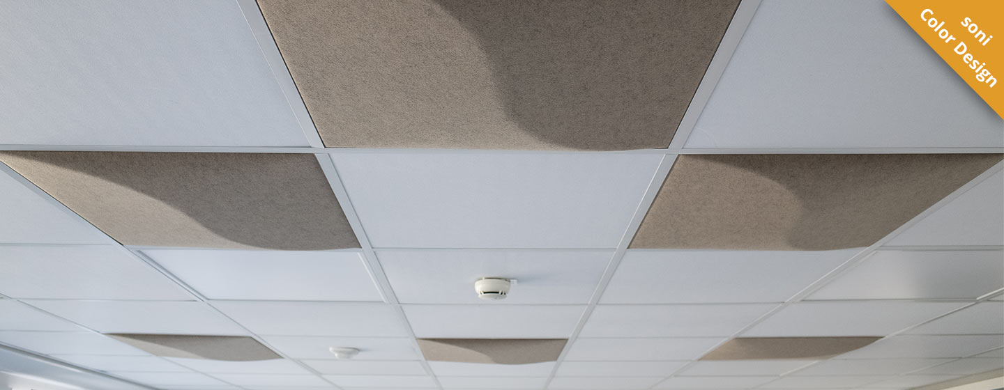 soni COLOR RD ist unser Einleger für Rasterdecken im Maß 620 x 620 mm, der ohne großen Aufwand in bereits vorhandene abgehängte Standard-Rasterdecken oder Odenwalddecken (OWA) eingelegt werden kann. Er besteht aus einem schallabsorbierenden weißen Polyestervlies, kaschiert mit einer dünnen melierten Filzoberfläche in aktuellen Trendfarben. soni COLOR RD Akustikelemente reduzieren den Schallpegel in einem Raum erheblich und tragen zur Verbesserung der Raumakustik in Büros, Besprechungsräumen oder Arztpraxen bei. Auch in Schulen, Kitas und Kindergärten ist soni COLOR RD ein bewährtes Akustikelement zur Lärmreduzierung. soni COLOR RD erfüllt die für den Baubereich erforderlichen Brandnormen gemäß DIN EN ISO 13501-1. Somit können Sie soni COLOR RD Akustikplatten als Decken- und Wandverkleidung überall dort einsetzen, wo der Schallpegel reduziert werden soll und gleichzeitig Brandschutzbestimmungen erfüllt werden müssen. soni COLOR RD lässt sich zur Verwendung als Wandabsorber mit unserem  soni SPEZIALKLEBER auf glatten und sauberen Oberflächen befestigen. Ist keine vollflächige Verklebung gewünscht, sorgt alternativ das soni KLETTBAND für einen sicheren Halt der Akustikelemente.