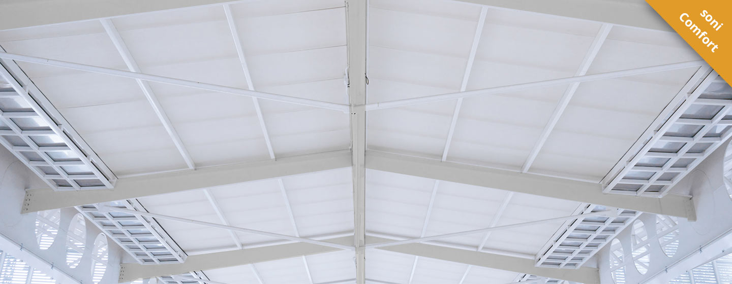 soni COMFORT ist ein sehr strapazierfähiger Schallabsorber aus einem weißen PES-Vliesstoff mit einem außergewöhnlich guten Schallabsorptionsvermögen. Zudem überzeugt soni COMFORT durch eine ausgezeichnete Brandfestigkeit. soni COMFORT ist gemäß DIN 4102, nach B1 (schwerentflammbar) geprüft und kann damit überall dort eingesetzt werden, wo der Lärmpegel reduziert werden soll und dabei Brandschutzbestimmungen erfüllt werden müssen. Zudem erfüllt soni COMFORT als Deckenelement die Ballwurfsicherheitsprüfung gemäß DIN 18032-3 und eignet sich damit ideal auch für den Einsatz in Sport- und Turnhallen. Darüber hinaus ist soni COMFORT sehr alterungsbeständig, mineralfaserfrei und physiologisch absolut unbedenklich. Alles in allem ein wirklicher Allrounder zur Optimierung der Akustik in den verschiedensten Räumen. Für eine vollflächige Verlegung an Decke oder Wand empfehlen wir Ihnen die Akustikplatte mit Fase, soni COMFORT F. Anders als bei soni COMFORT mit glatten Kanten wird bei soni COMFORT F durch eine abgeschrägte umlaufende Fase (10 x 10 mm) eine besonders schöne Optik erzielt. Dadurch lassen sich beispielsweise Unebenheiten an Decke oder Wand optisch ausgleichen. Sie können soni COMFORT bzw. soni COMFORT F bei Bedarf mit einem Cuttermesser oder Stichsäge mit Sägeblatt für Softmaterial auf Ihr gewünschtes Maß zuschneiden. Zur Befestigung der Akustikplatten empfehlen wir Ihnen unseren soni SPEZIALKLEBER.