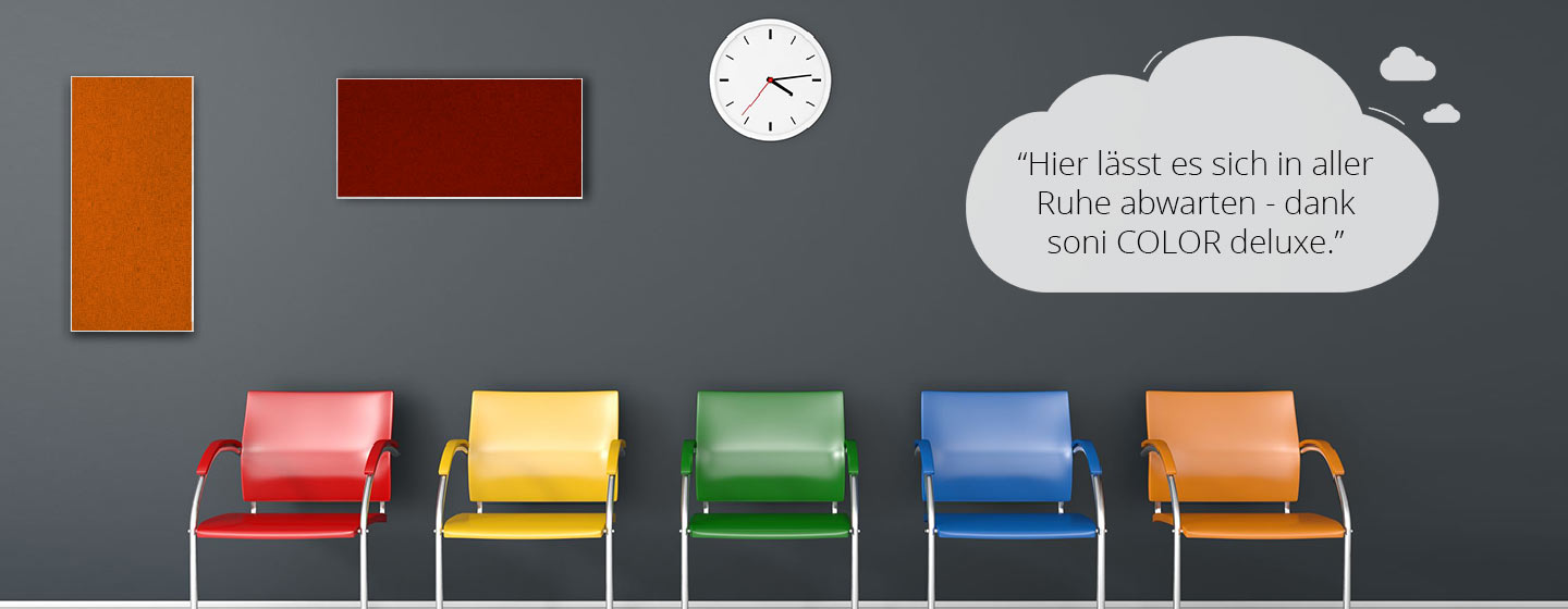 Ob nun das Wartezimmer in der Praxis, einer Kanzlei oder in anderen Objekten, wer seinen Wartebereich gestalten möchte, sollte auch immer den Schallschutz im Auge behalten. Bei soniflex finden Sie Schallabsorber, welche nicht nur rein optisch begeistern, sondern auch mit ihrer effizienten Wirkung überzeugen. Ein hochwertiger Schallschutz sorgt im Wartebereich für mehr Ruhe und Diskretion.