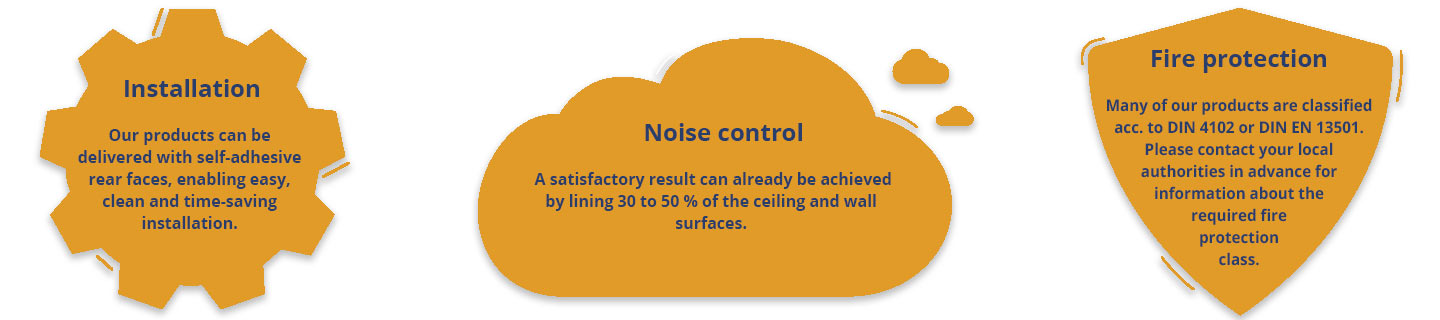 Acoustically optimized waiting areas and entrance halls allow undisturbed communication and ensure the required privacy. With our easy-to-install sound absorbers you can realize your individual interior design ideas and, at the same time, create an enjoyably quiet environment for your employees, customers and patients. In addition, the visually appealing acoustic elements will enhance every room and can also be installed without major effort in facilities that are already in operation.