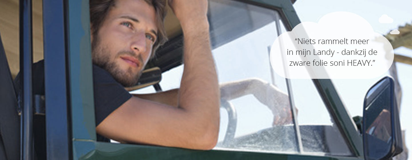 De belangrijkste remedie hierbij is om te voorkomen dat plaatwerkdelen, zoals bijvoorbeeld de voertuigvloer of de deuren, gaan dreunen en vibreren met behulp van zware folies of een robuust geluiddempend materiaal. Onze geluidswerende folies zorgen ervoor dat het geluid zich niet door het voertuig kan verspreiden. Door de geringe dikte kunnen onze zware folies (geluidswerende folies) soni HEAVY en soni EVA ook gebruikt worden wanneer de ruimte beperkt is.